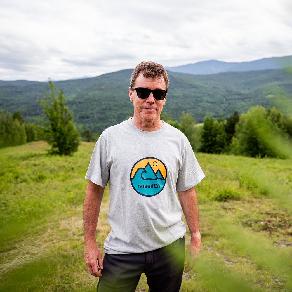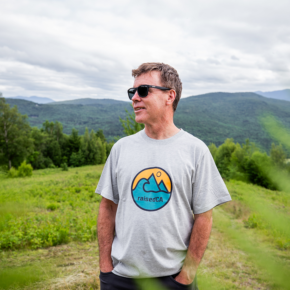 raisedCA California Ocean and Mountains Men's T-Shirt. Soft and cozy, Cali-style! Please note: these are unisex with no specific women's taper fit.